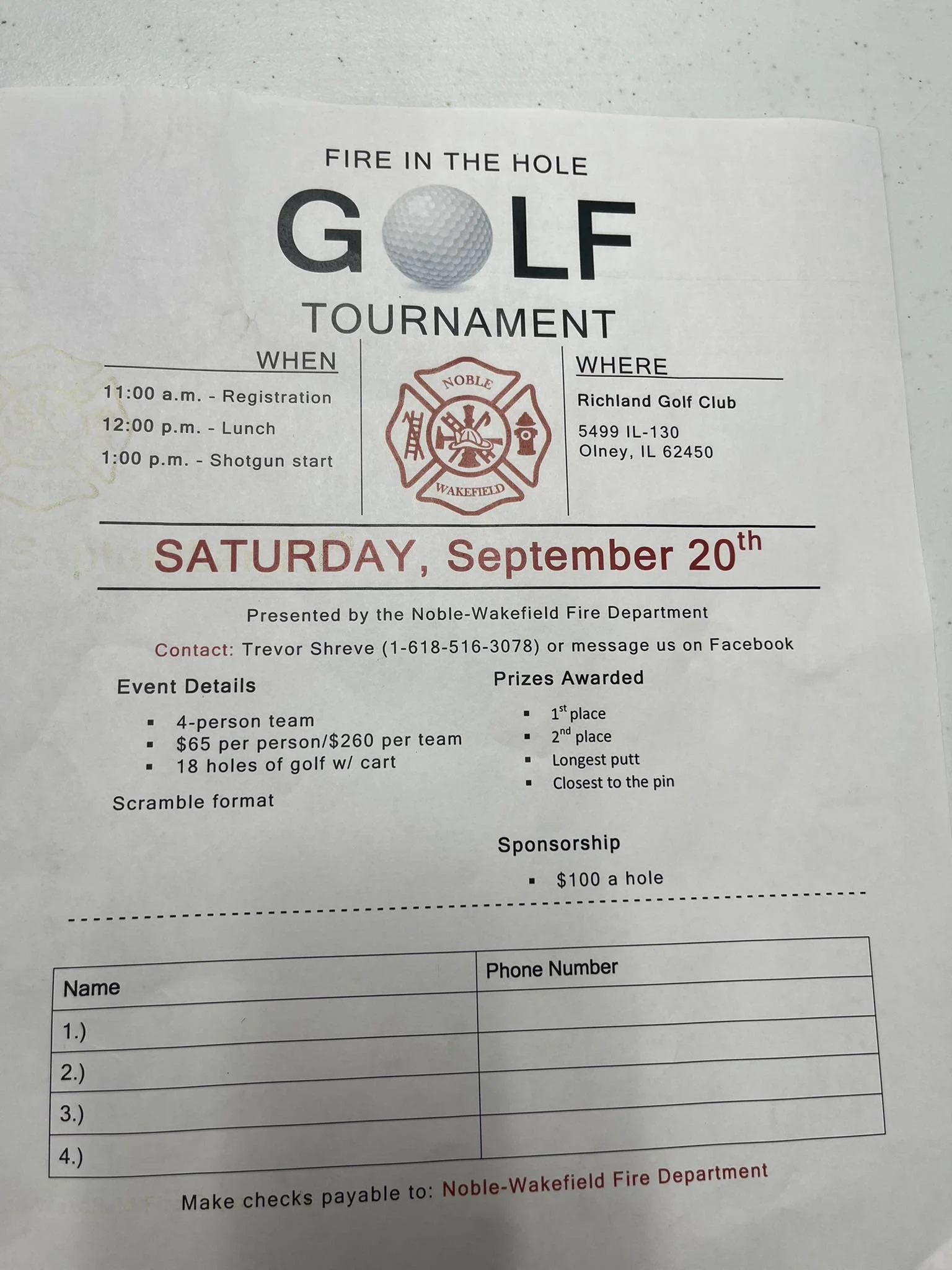Registration begins at 11AM, Noon Lunch and a 1PM shotgun start.